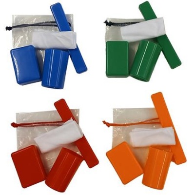 Tisztasági csomag összehúzható átlátszó zsinóros tasakban.